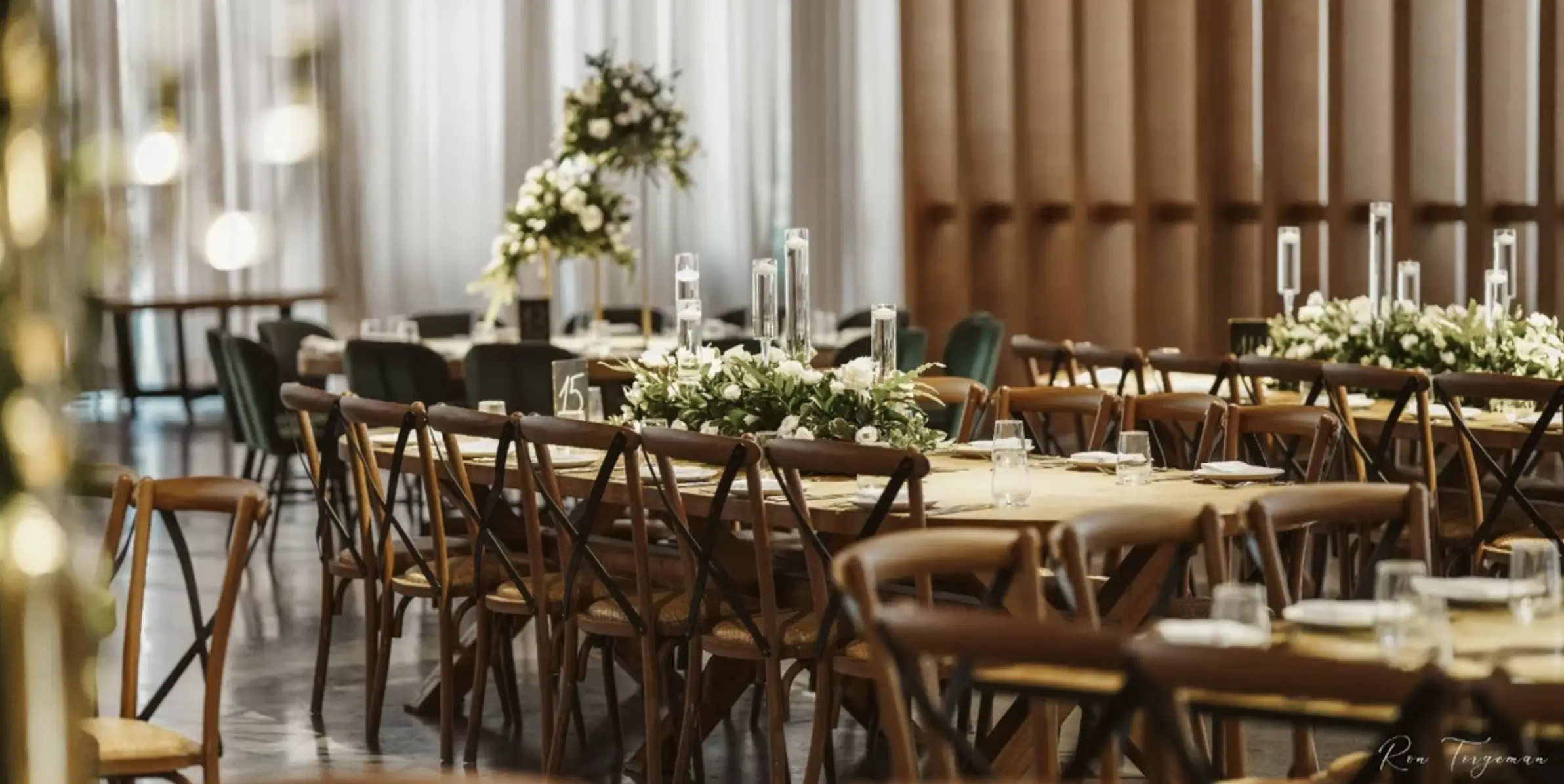חלל האירועים שלנו ממשיך את האוירה הרומנטית והמיוחדת הזו, ומוסיף לה יופי הודות לאור הטבעי הנפלא שנכנס דרך החלונות הגדולים. כל פרט עיצובי, קטן כגדול, זכה למחשבה מרובה כדי להשלים את החוויה הויזואלית והחושית הייחודית כל כך לאודאון.
